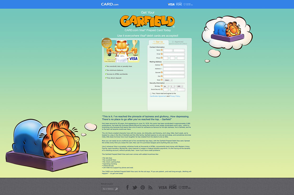 This is Garfield-branded page I designed for Card.com.