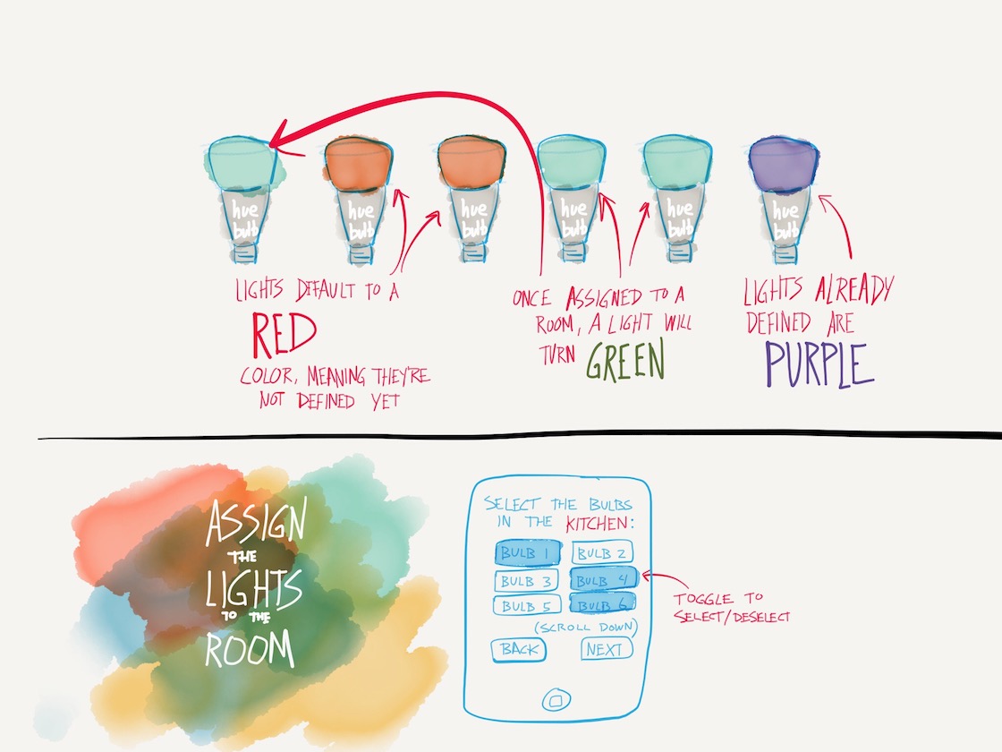 I'm a fan of the Philips hue lights, but not so much the official app. I designed a new app that would make assigning and controlling lights an intuitive and fun way to control your lights.